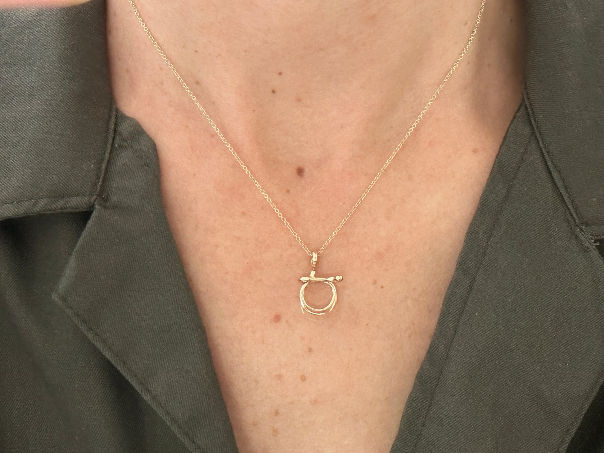 Description: The Awww-Closure is a versatile charm, meticulously crafted from 14k yellow gold, measuring approximately 0.5 inches. Designed to function both as a standalone pendant and as a functional closure mechanism, it embodies Oblik Atelier's signature blend of form and utility. Suspended from a 16-inch 14k yellow gold chain, this piece offers both elegance and adaptability.