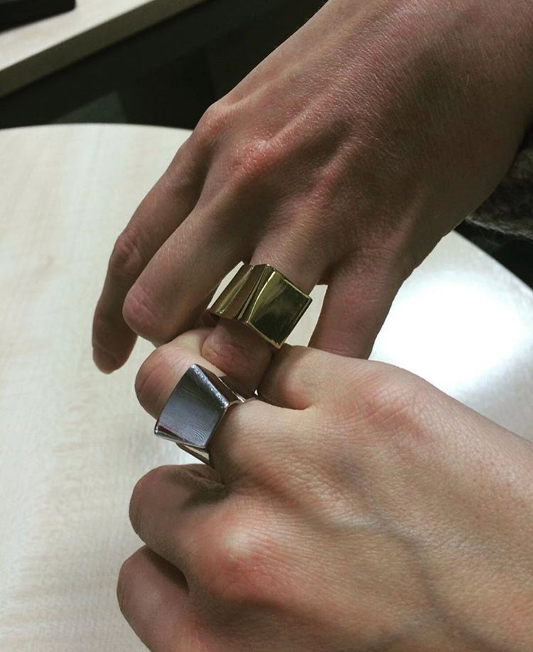 Styling Suggestions: This ring's architectural design makes it a versatile accessory, suitable for both casual and formal outfits. Its bold form allows it to stand alone as a statement piece or be paired with other minimalist jewelry for a cohesive look.