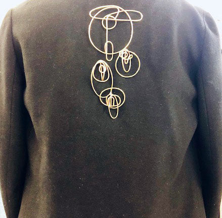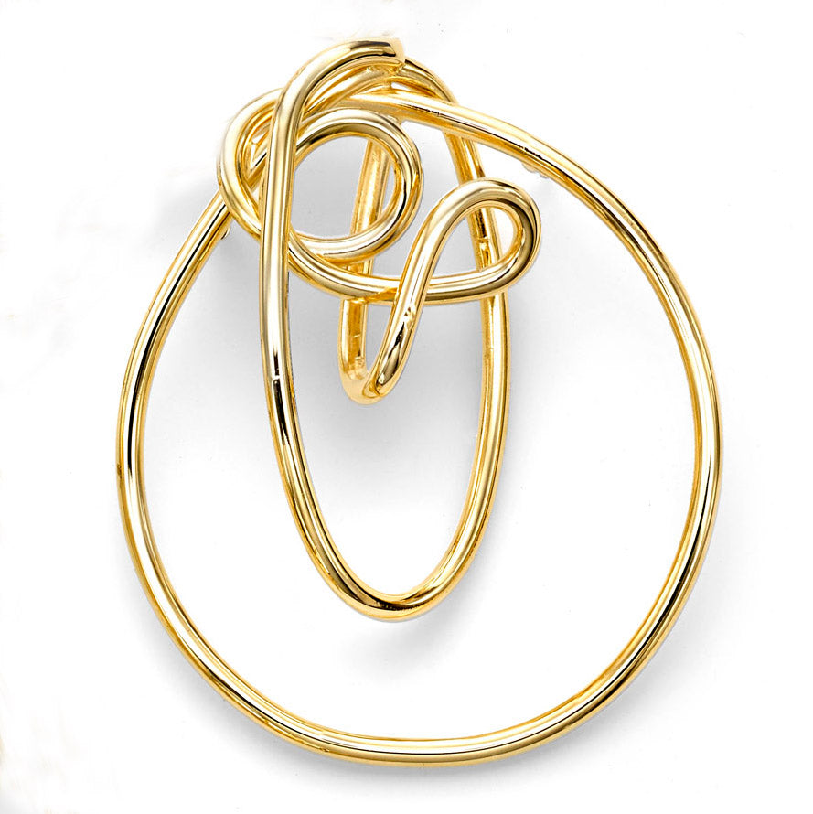 Description: The Croquis Pin is a wearable sketch—an organic, freeform design inspired by the spontaneity of hand-drawn lines. Each pin is hand-coiled from brass wire, resulting in a unique, sculptural shape that plays with dimension and movement. Available in two sizes—Medium Shaped and Large Round—these pins are made to order, ensuring that no two are exactly alike. Finished with 14k nickel-free gold plating, each pin is sold individually.