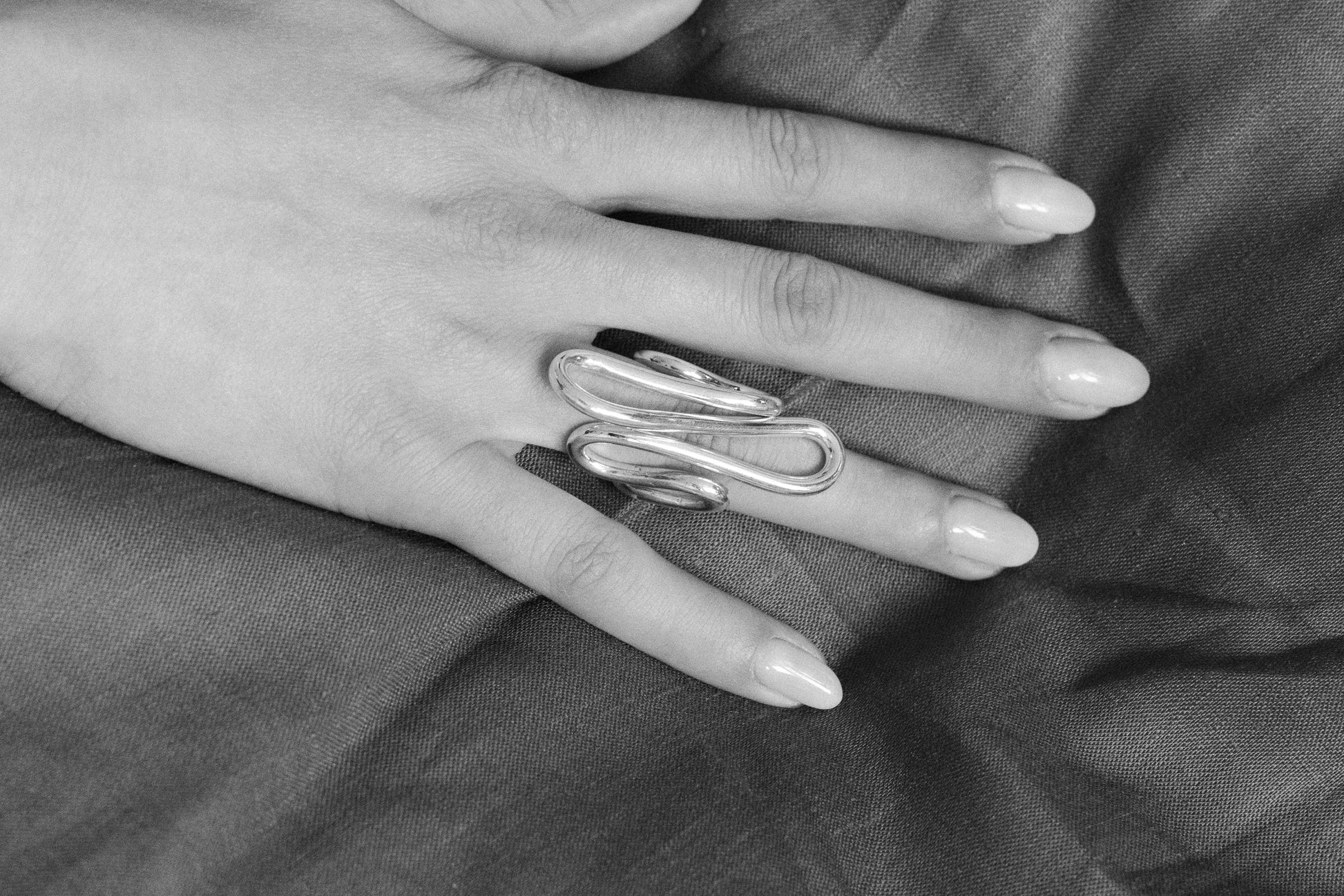 Styling Suggestions: Designed to be worn on the middle finger, the Flow Ring makes a bold statement and fits comfortably between the fingers. Its modern and fierce aesthetic complements both casual and formal attire, adding an artistic touch to any ensemble.