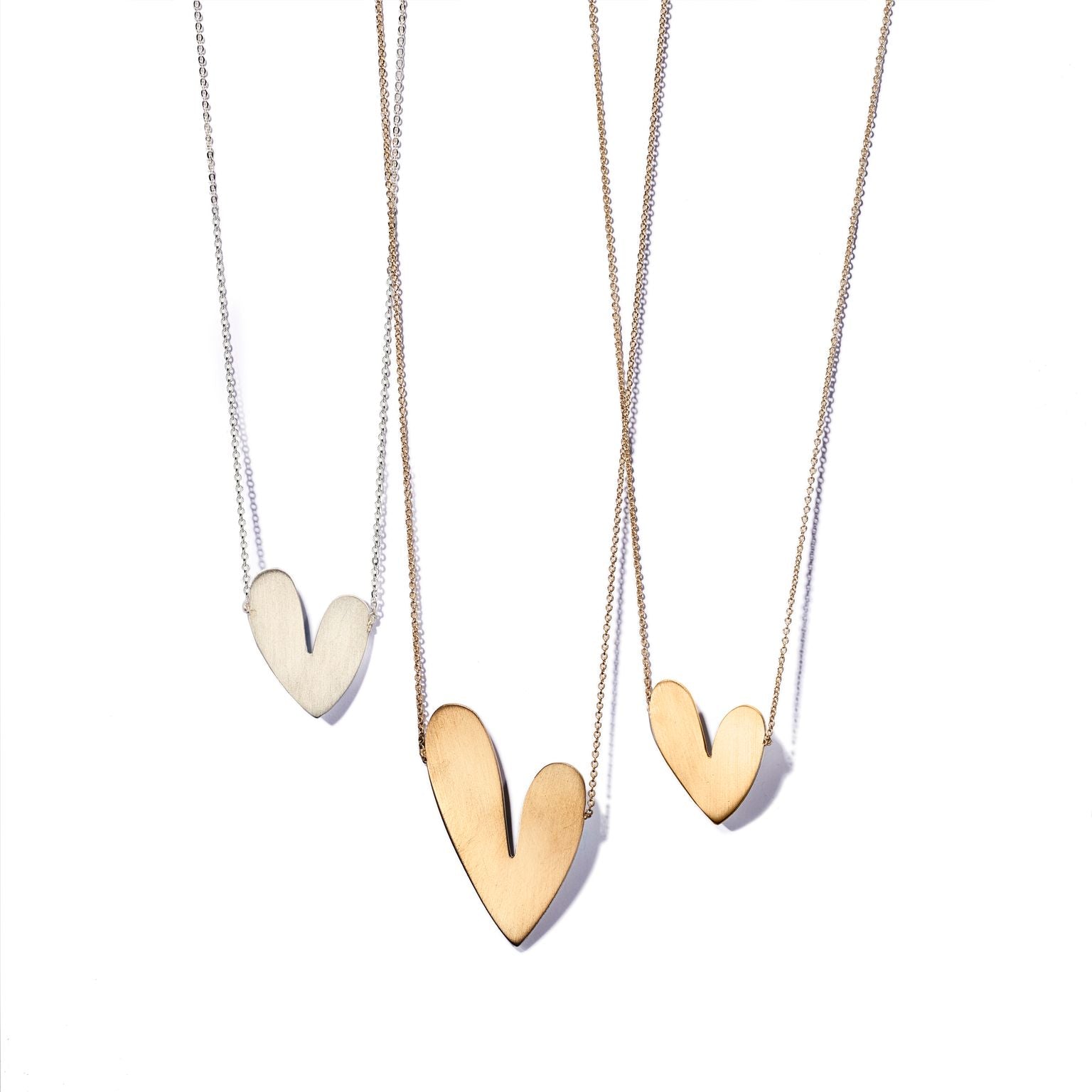 Description: The Heart Necklace is a delicate piece from Oblik Atelier's 2020 Let's Embrace series, designed to symbolize connection and shared stories during challenging times. Each pendant is handcrafted and available in two sizes: