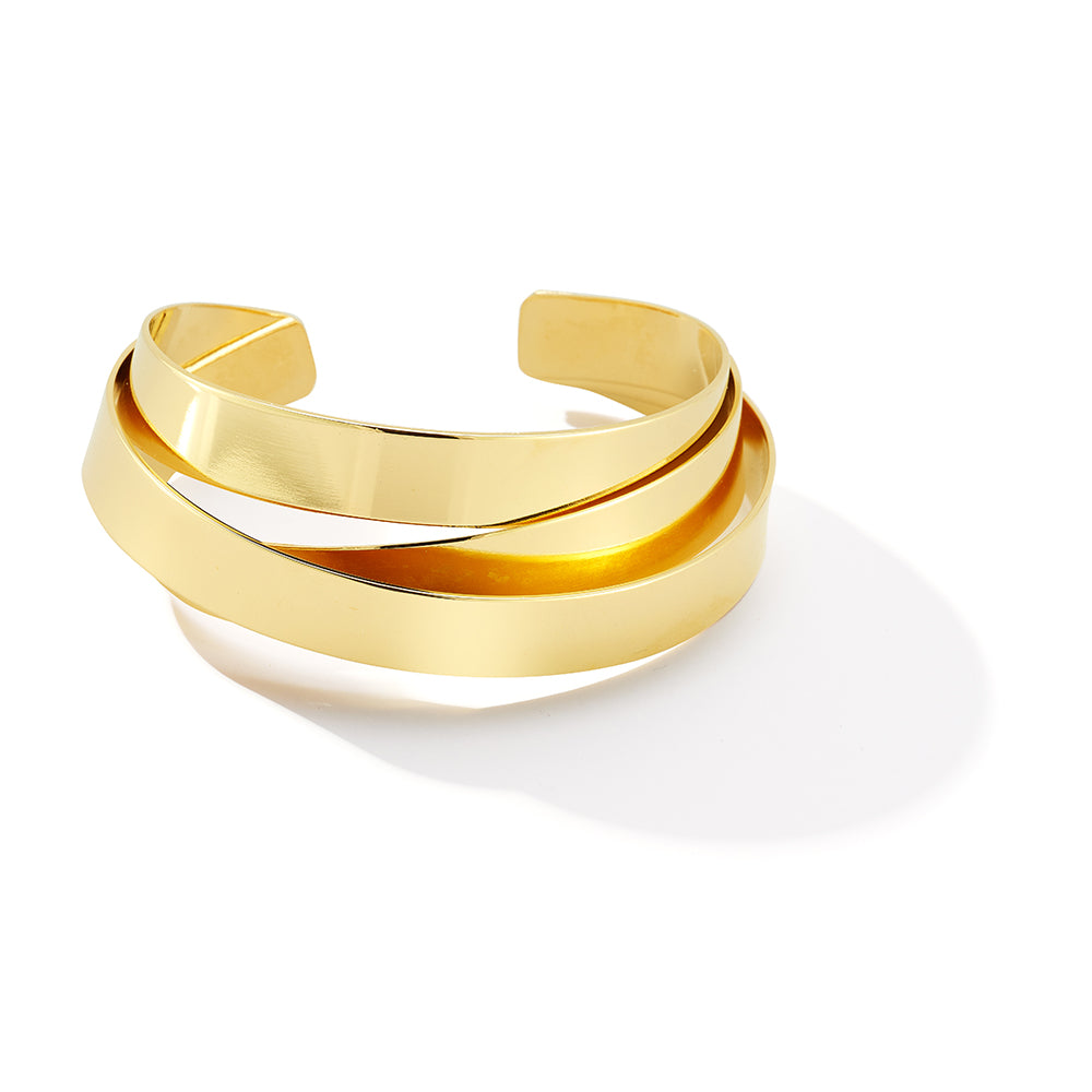 The Orbit Cuff Bracelet is a refined interpretation of an earlier design—originally a seven-layered piece created for formal occasions. Designer Mia simplified the form to three structured bands, resulting in a bracelet that’s versatile, streamlined, and ideal for everyday wear. Made from brass with a 14k nickel-free gold plated finish, the cuff’s clean lines and balanced proportions reflect Oblik Atelier’s commitment to modern, wearable design without compromising on presence.