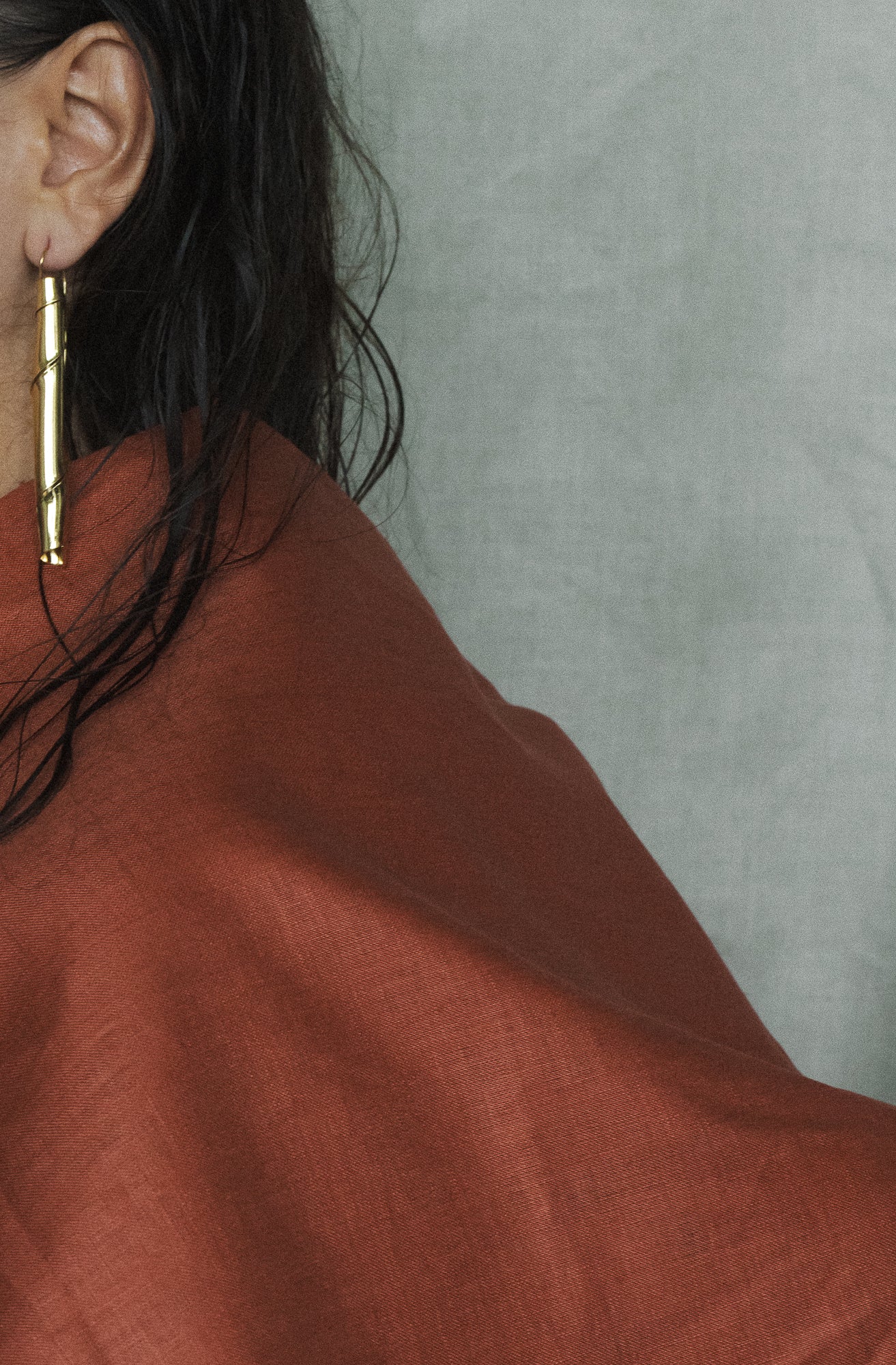 Craftsmanship Details: Handcrafted in Oblik Atelier's Brooklyn studio, each pair of Tunnel Vision Drop Earrings reflects the brand's commitment to quality and artistry. The hand-formed nature ensures that each piece possesses unique characteristics, adding to its distinct charm.